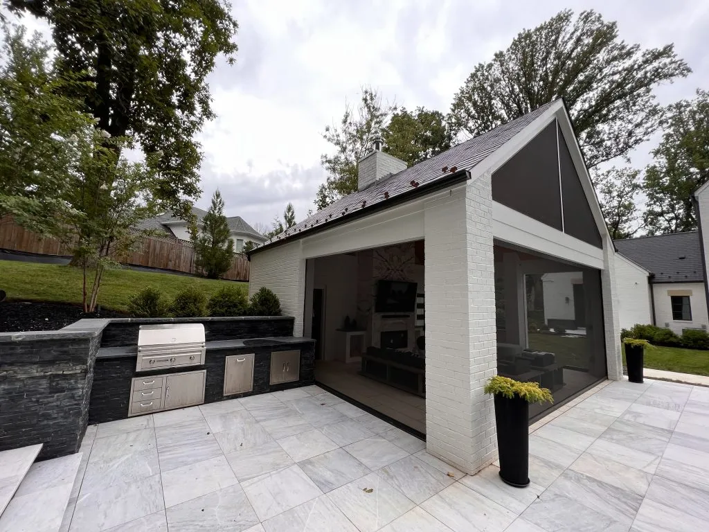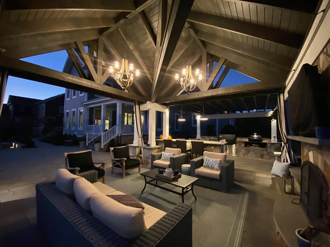 Imagine an outdoor kitchen, cabana, pool bar or pergola that is the epitome of comfort and luxury. Whether you desire the rustic charm of a wood-burning fireplace or the modern convenience of a gas insert, we can integrate these elements seamlessly into your design. Our innovative approach to outdoor lighting for our clients in McLean, Arlington, Alexandria, Great Falls, Leesburg, Washington, DC, and surrounding areas transforms these spaces into enchanting night-time retreats, extending the enjoyment of your outdoor living area well after sunset.