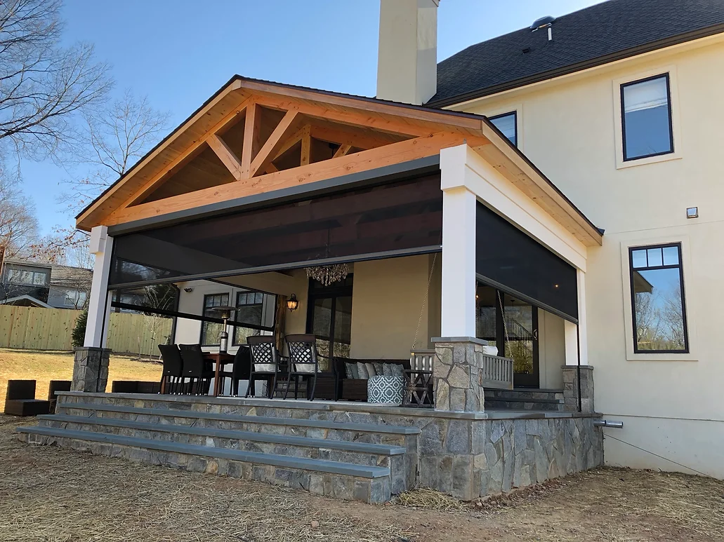 Our dedication to quality and aesthetics shines through in our choice of materials and construction methods. We utilize only the finest woods like cedar, douglas fir, and oak to craft our custom trusses, ensuring that each outdoor room is a masterpiece of durability and design. Tailored to fit your specific requirements, these structures are more than just additions to your home; they are a celebration of craftsmanship and natural elegance.